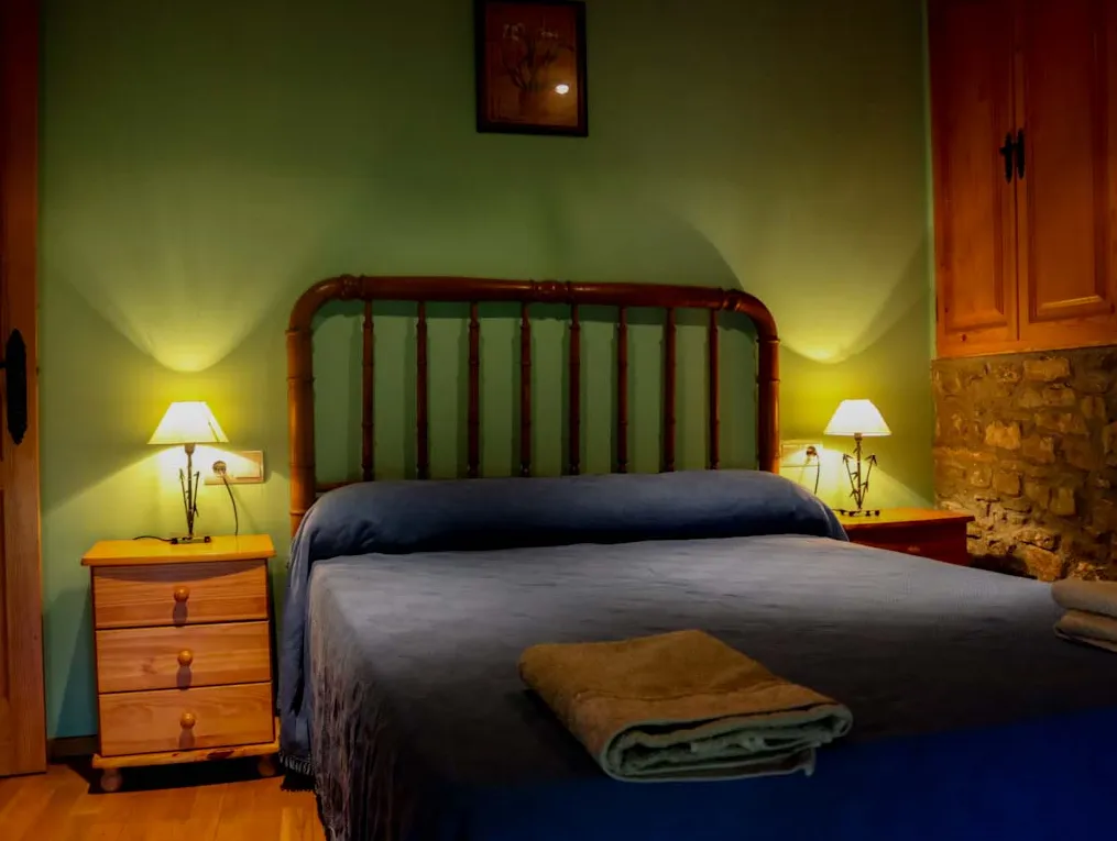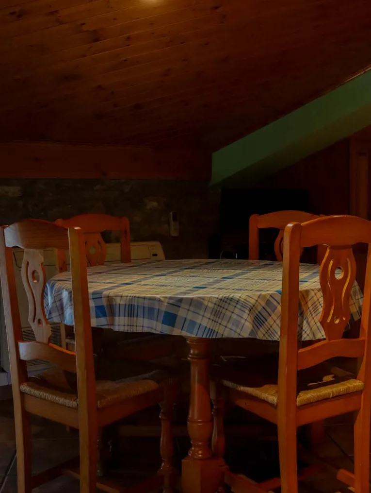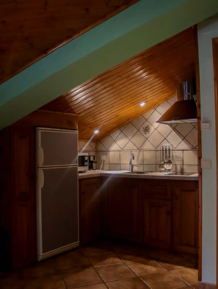 Abuhardillado, íntimo y muy acogedor, ideal para escapadas en pareja. La chimenea, la madera y la decoración rústica lo convierten en un pequeño refugio donde el tiempo se detiene. Un espacio para disfrutar con calma.